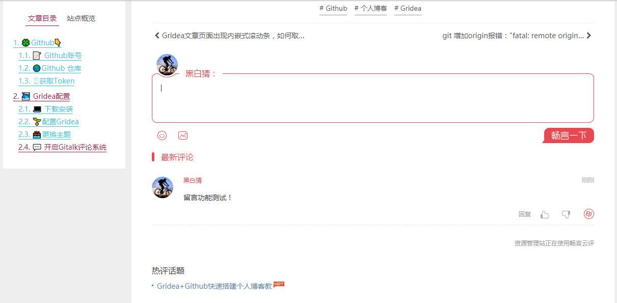 原创Gridea静态博客添加部署畅言云评论功能 Gridea默认的两款留言评论平台一个是Gitalk,一个是Disqus,这两款评论平台使用起来网络连接不好,也不稳定,就想把畅言云评论加到Gridea中使用! zyglz 2020-03-03 16373 Gridea